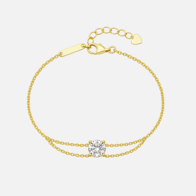 Ce bracelet de la collection Calvina charme par sa double chaîne fine et son éclat central, expression d’une élégance discrète et équilibrée.