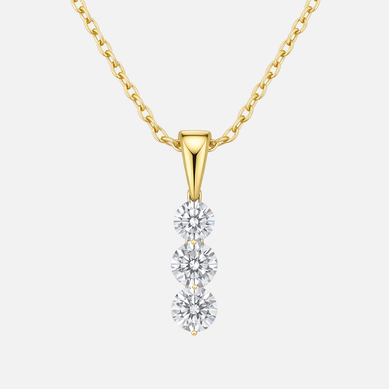 Ce collier de la collection Calvina dévoile un pendentif à trois éclats alignés, symbole d’une harmonie subtile entre équilibre et lumière.