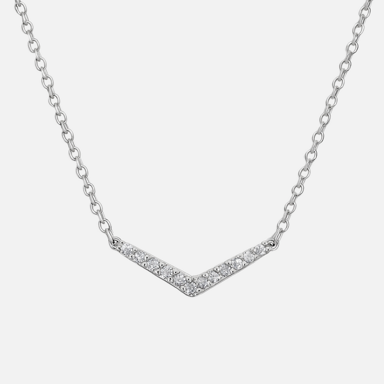 Ce collier de la collection Nevara révèle un motif angulaire inspiré des lignes de l’eau, mêlant précision et sérénité dans un équilibre raffiné.